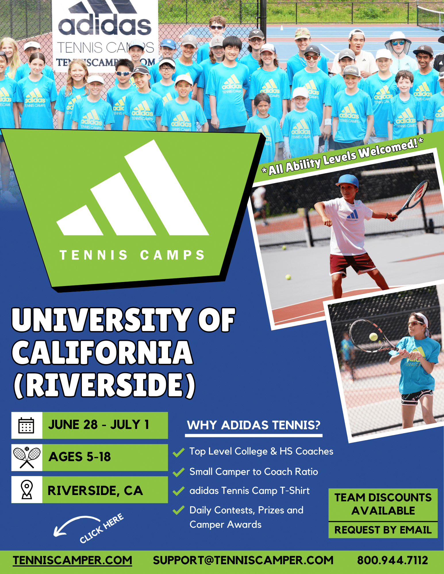 adidas Tennis Camp is open to kids & teens ages 5 to 18 of all ability levels.