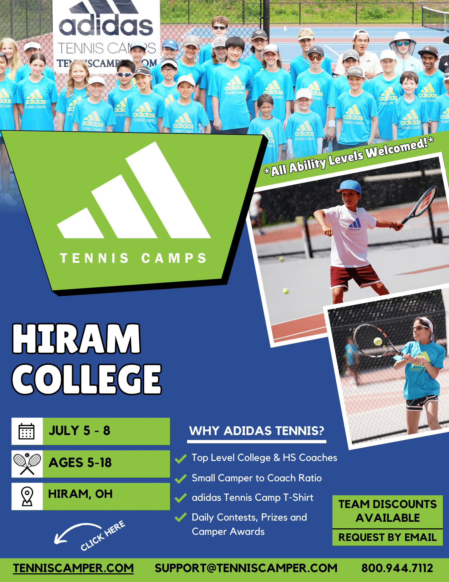 The Tennis Courts are at the center of the athletic complex at Hiram College. We’re excited to host the adidas Tennis Camps at Hiram College. Join us and have fun while improving your tennis skills this summer!