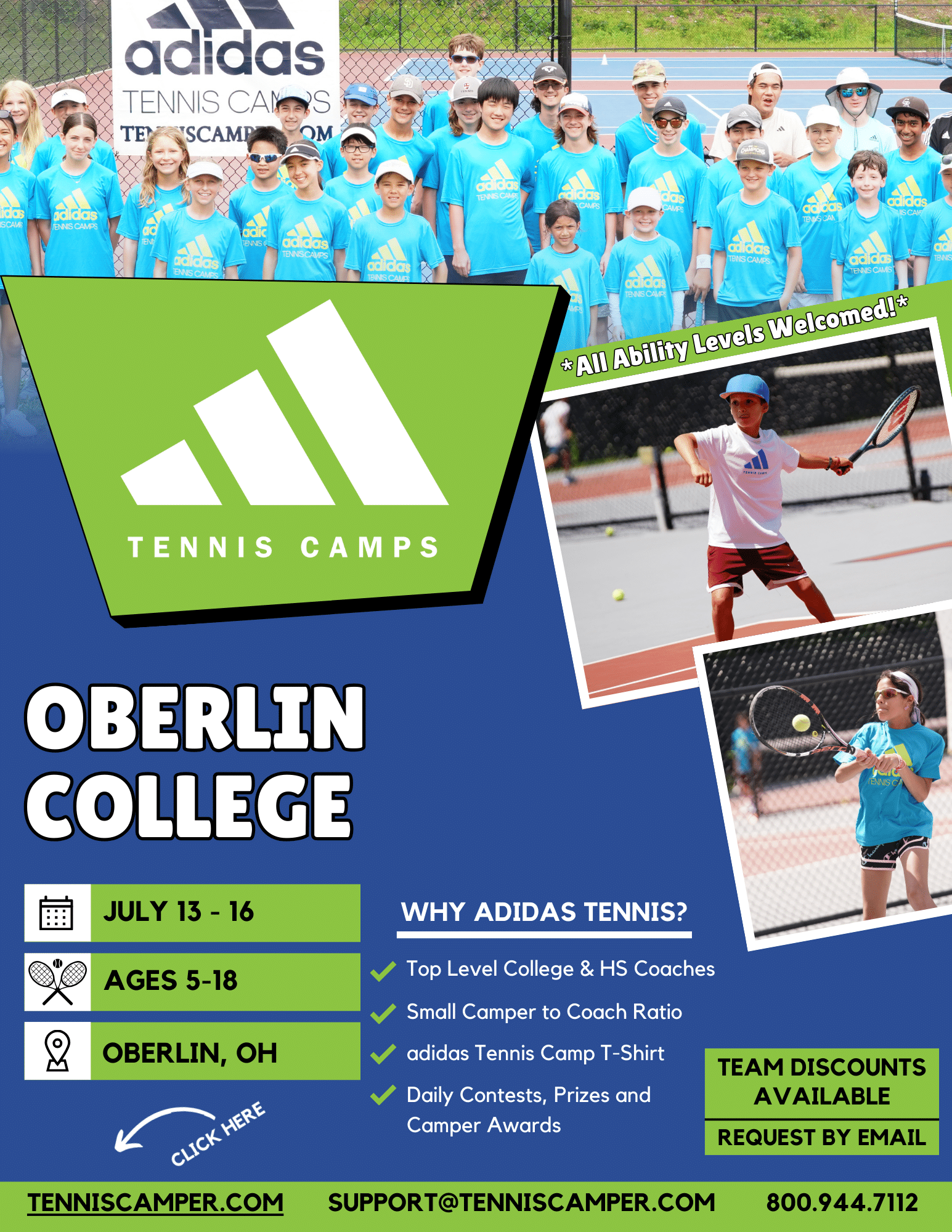 adidas Tennis Camp is open to kids & teens ages 5 to 18 of all ability levels.